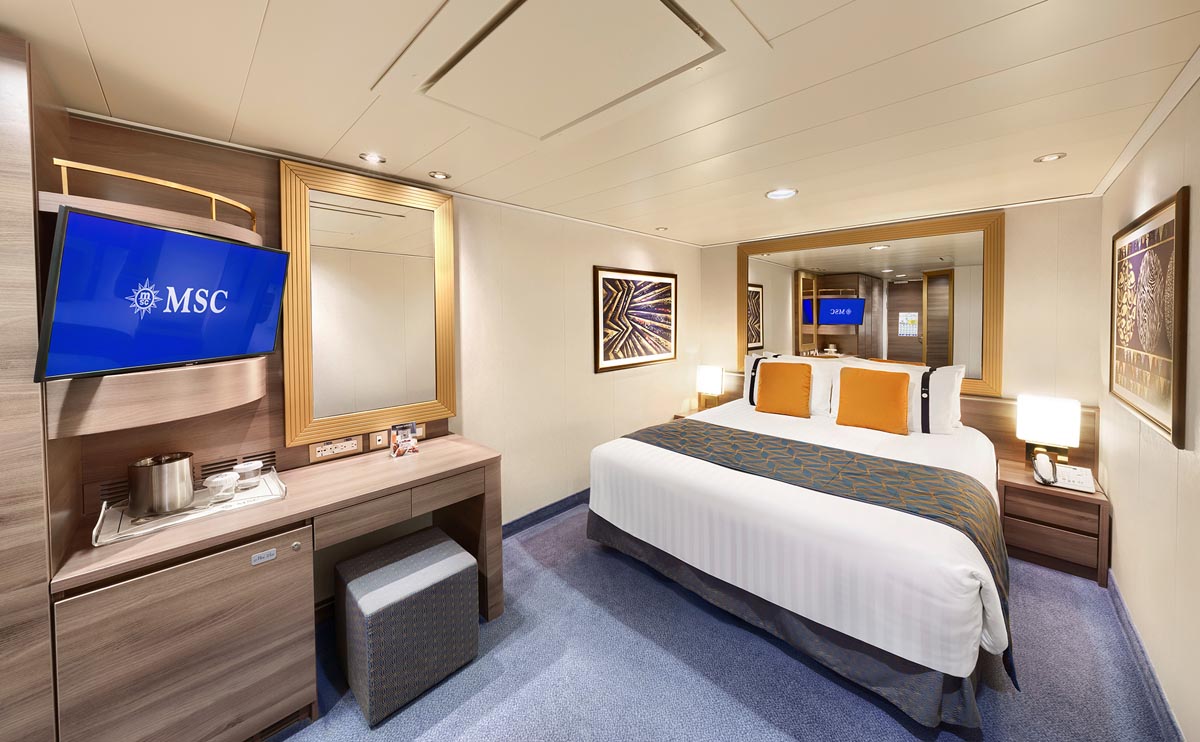 A cabine interna é perfeita para quem quer viver intensamente tudo o que o navio tem a oferecer e procura uma opção mais econômica. Localizada na área central, sem vista para o mar, conta com cama conversível, banheiro privativo, ar-condicionado, TV, cofre e frigobar.