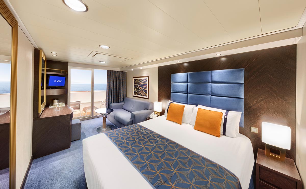 Com mais espaço, sofisticação e todos os benefícios da categoria Experience, as suítes oferecem uma estadia ainda mais confortável e elegante. Com varanda privativa, essas acomodações contam com ambientes amplos e localização especial a bordo.